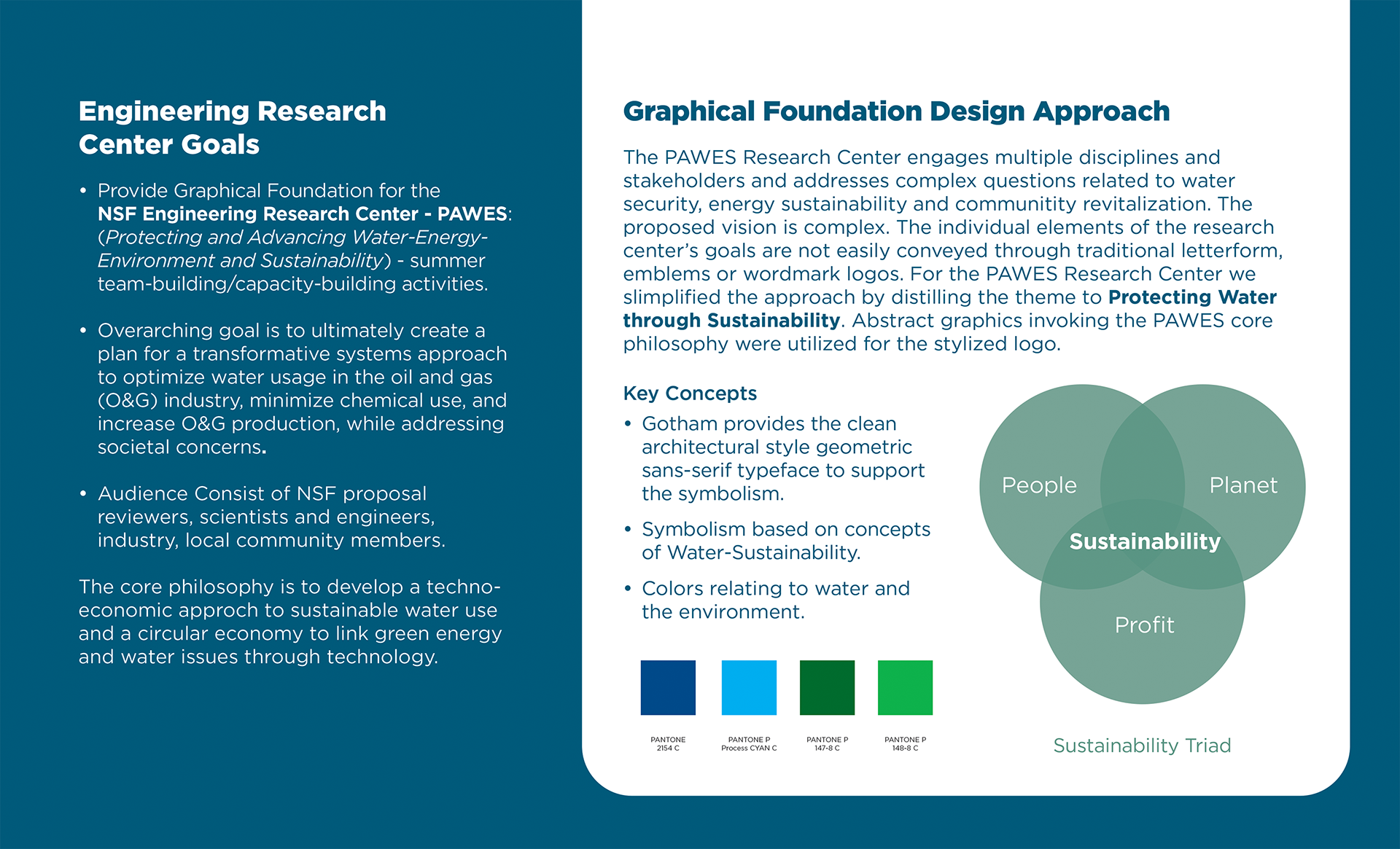 Logo design for a National Science Foundation (NSF) research funding application. Protecting and Advancing Water-Energy-Environment and Sustainability (PAWES). Three design approaches with the University of Tennessee branding colors. Adobe Illustrator.