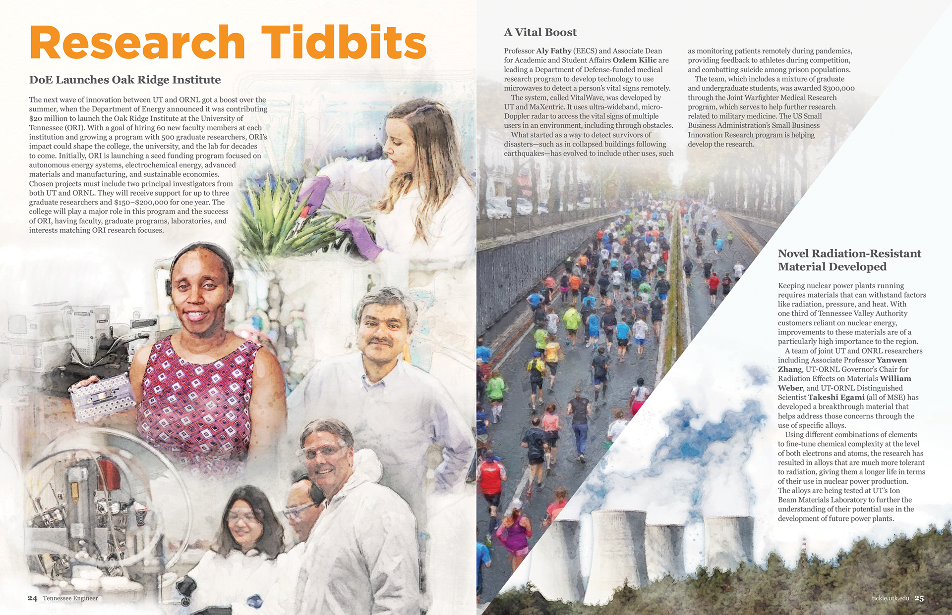 CBE Update, Department of Chemical & Biomolecular Engineering. Dashboard, Department of Industrial & Systems Engineering. The Focus, Tickle College of Engineering Office of Diversity. Material, Department of Materials Science & Engineering. Momentum (MABE), Department of Mechanical, Aerospace & Biomedical Engineering (published twice a year). The Source, Department of Nuclear Engineering. Tennessee Engineer, Tickle College of Engineering (published twice a year).